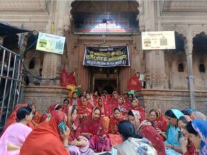 मथुरा-वृंदावन: बांके बिहारी मंदिर कॉरिडोर और अध्यादेश के खिलाफ 64वें दिन भी विरोध, गोस्वामी और व्यापारी महिलाओं ने किया प्रदर्शन