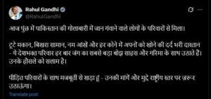 पहलगाम आतंकी हमले के बाद राहुल गांधी बैक-टू-बैक जम्मू-कश्मीर के दौरे कर रहे हैं, 22 अप्रैल को पहलगाम में हुए आतंकी हमले के बाद राहुल गांधी सबसे पहले 25 अप्रैल को श्रीनगर पहुंचे थे, उसके बाद Rahul Gandhi ने पुंछ (Rahul Gandhi Poonch Visit) का रुख किया है. और हालात की जानकारी लेते हुए स्थानीय लोगों का हौसला बढ़ाया है.